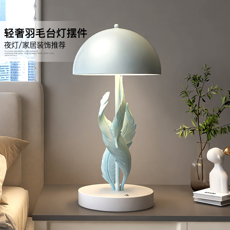 ベッドの上の小夜灯の軽い豪華な羽毛の電気スタンドは小さい大衆の高級感の芸術の装飾品の玄関の雰囲気の明かりの寝室を並べます。