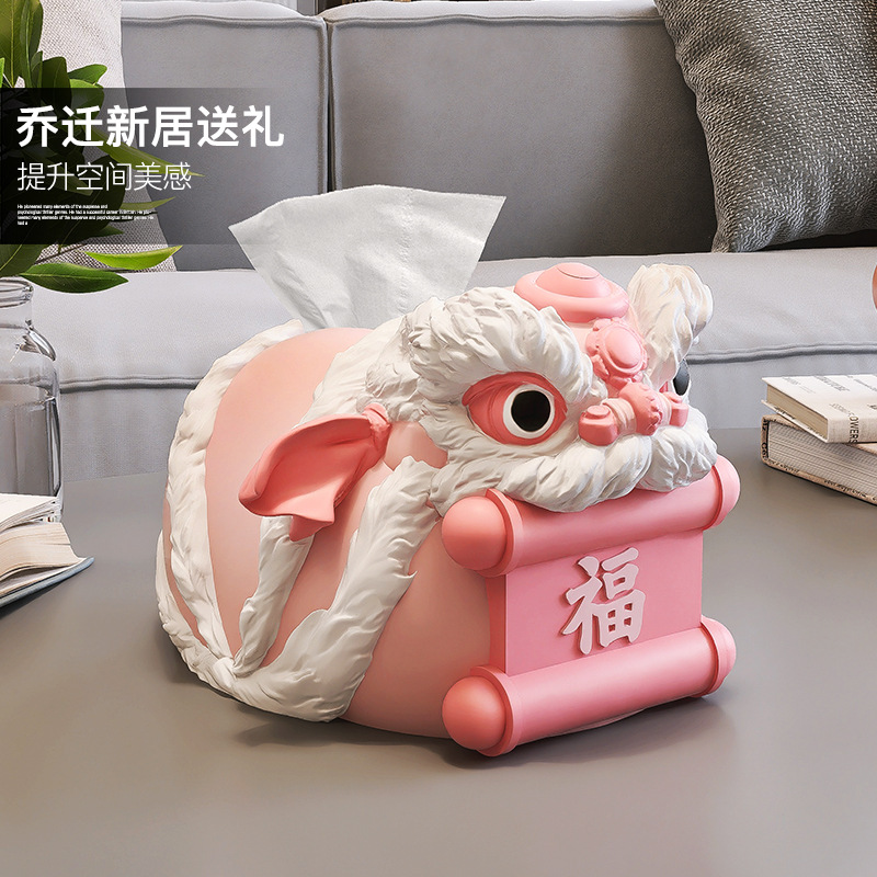 国潮風が目を覚ますライオンのティッシュ箱の置物新年の春節の引き出し箱のリビングルームの家庭用ナプキン箱のお祝い工芸品