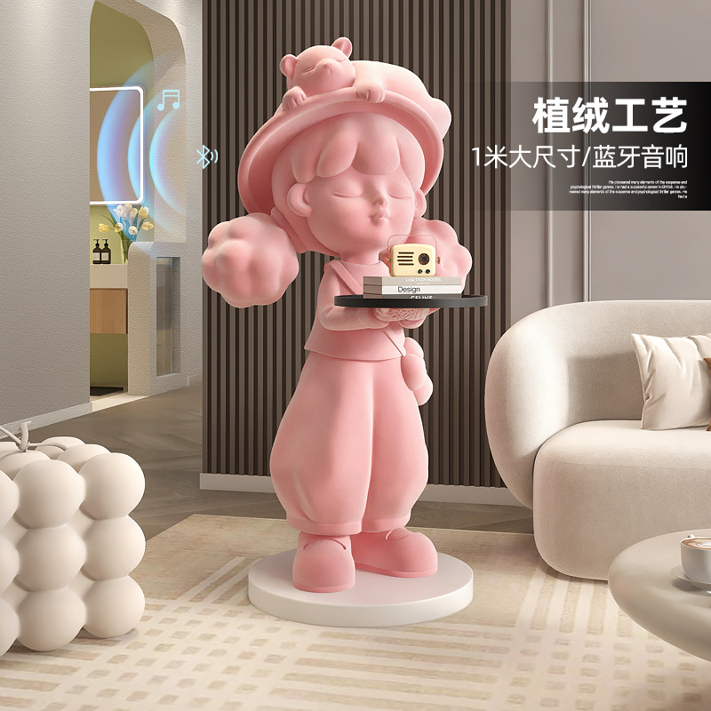 植毛の高級感の女の子の大型の着地の置物の客間のテレビの棚のソファーのそばのネットの赤い装飾品は新居に引っ越します。