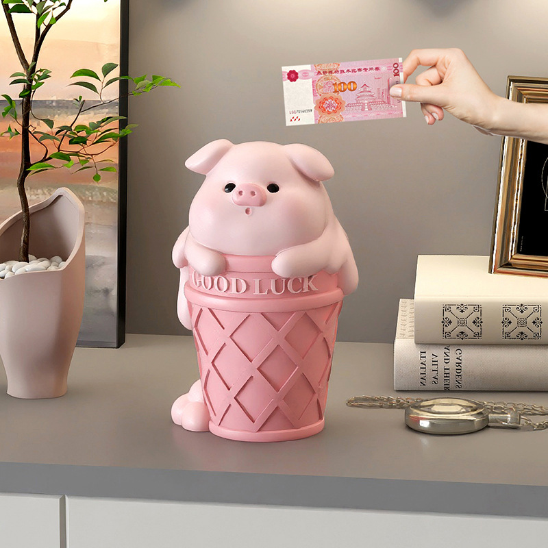 クリーム風のブタの貯金箱の置物は貯金箱の家庭の装飾品の男女の子供の誕生日プレゼントだけが入りません。