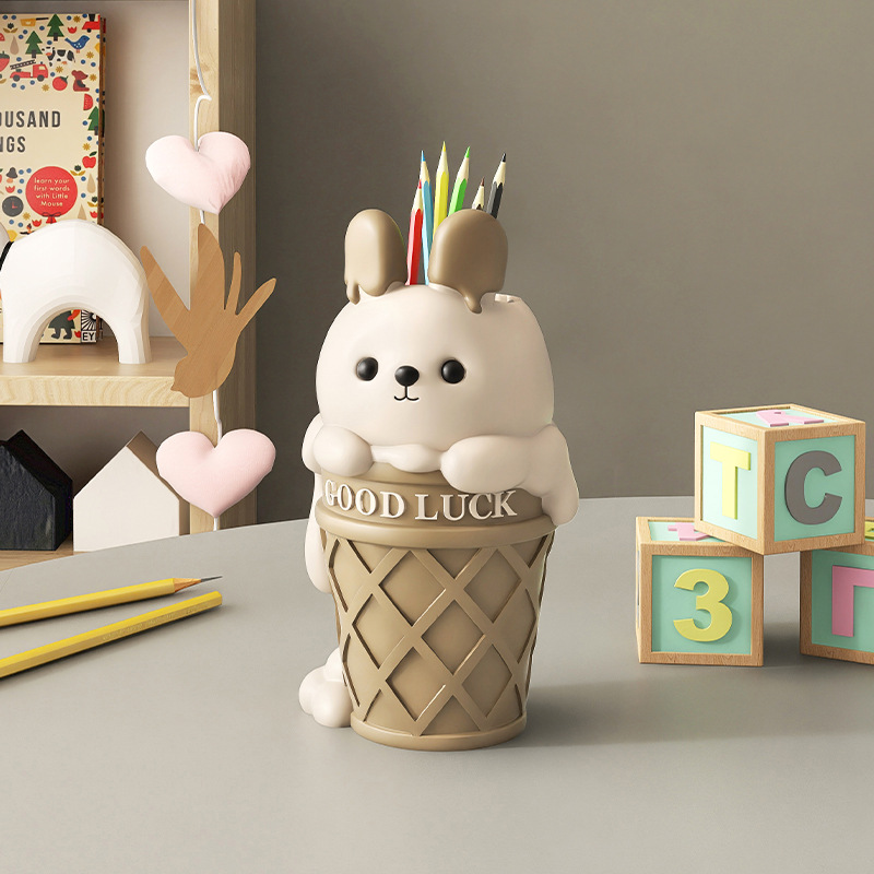 クリーム風ウサギ筆筒置物誕生日プレゼント創意書斎デスクトップ収納ケース子供文房具バケツ大容量