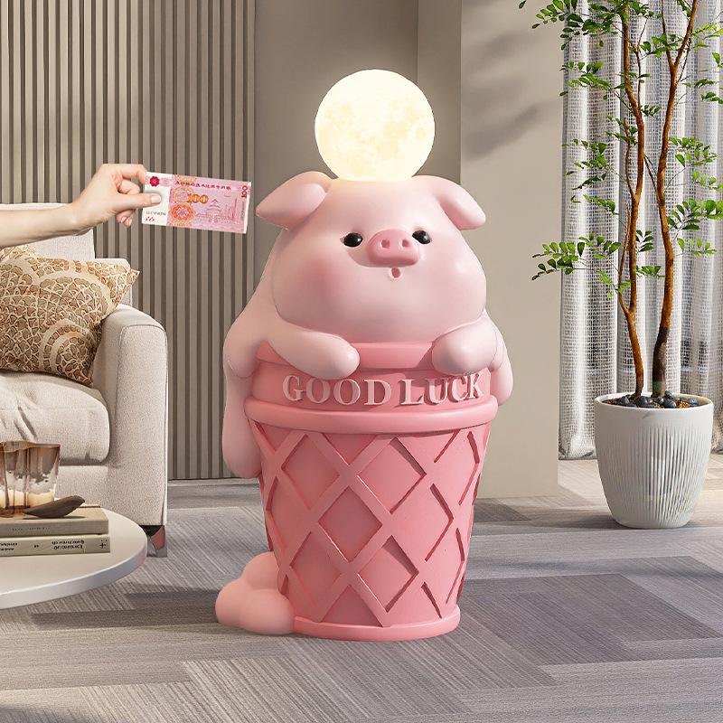 クリーム風の子豚のフロアランプの置物の大容量貯金箱の客間の玄関の家の装飾品の夜の明かりの子供の部屋