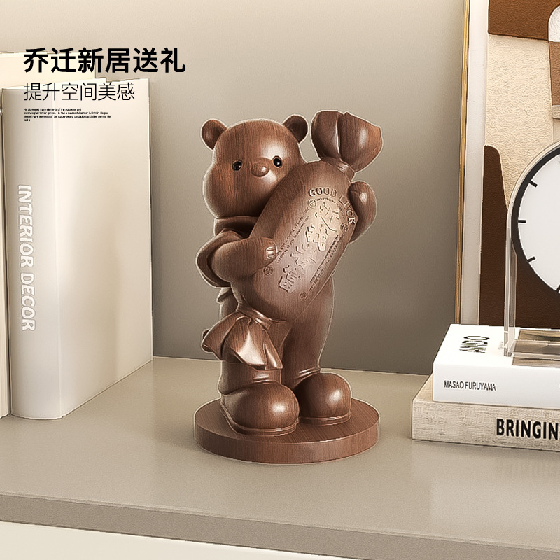 創意植毛熊公仔大型玄関彫刻引っ越し引っ越しプレゼント着地置物高級感大衆客間