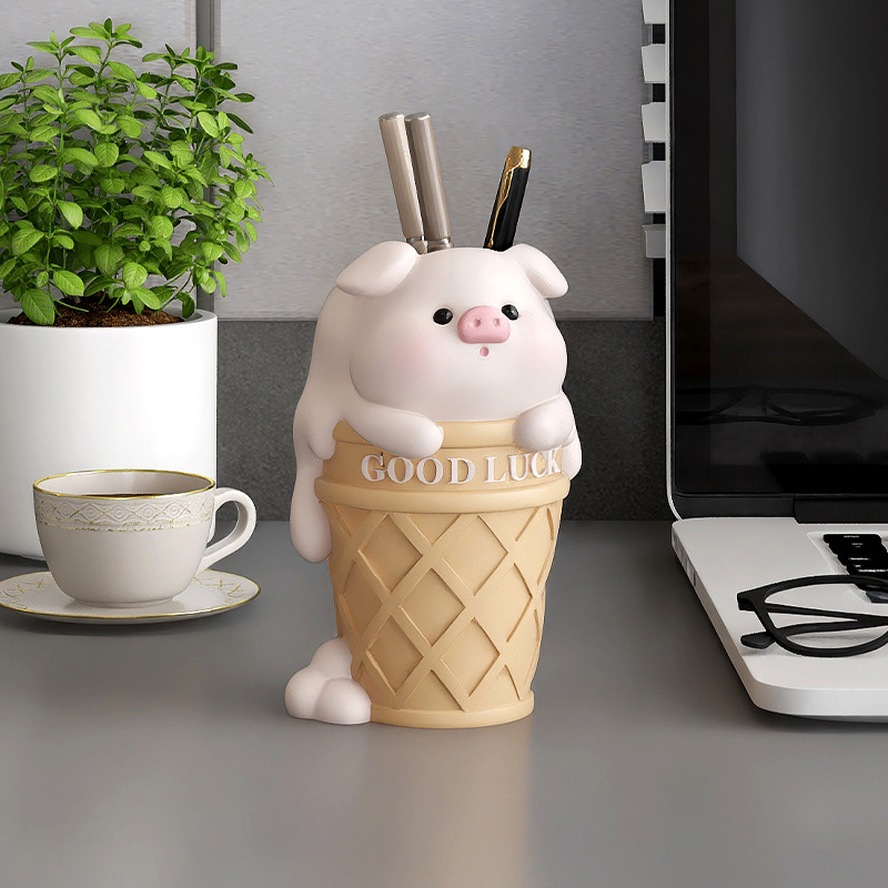 クリーム風のブタの筆筒の置物の事務室の情緒は安定しています。