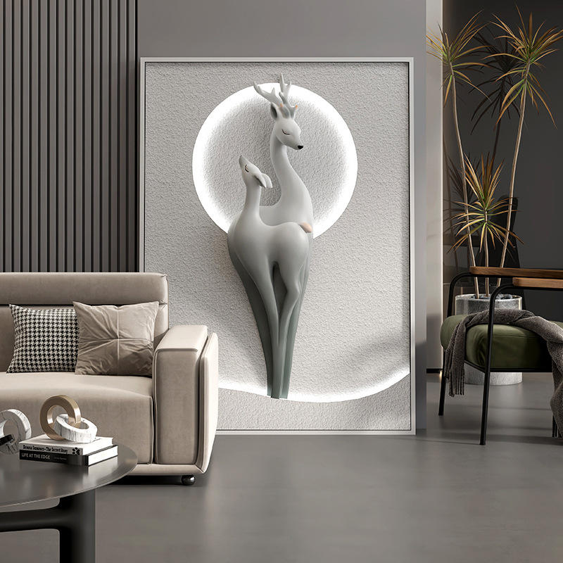 現代の軽豪華なヘラジカ掛け画客間装飾画創意玄関led発光雰囲気灯画縦版着地画