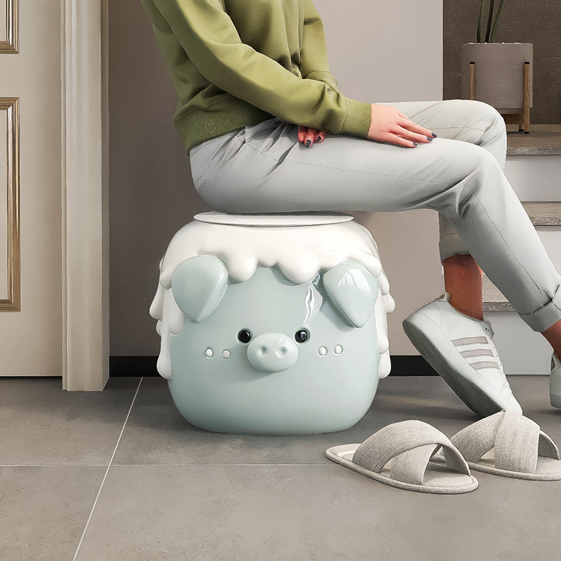 かわいい子豚の装飾品が家に入って玄関に入って靴を替えて子供の部屋の腰掛けのリビングルームの家庭用ソファーのお茶の数辺になっている