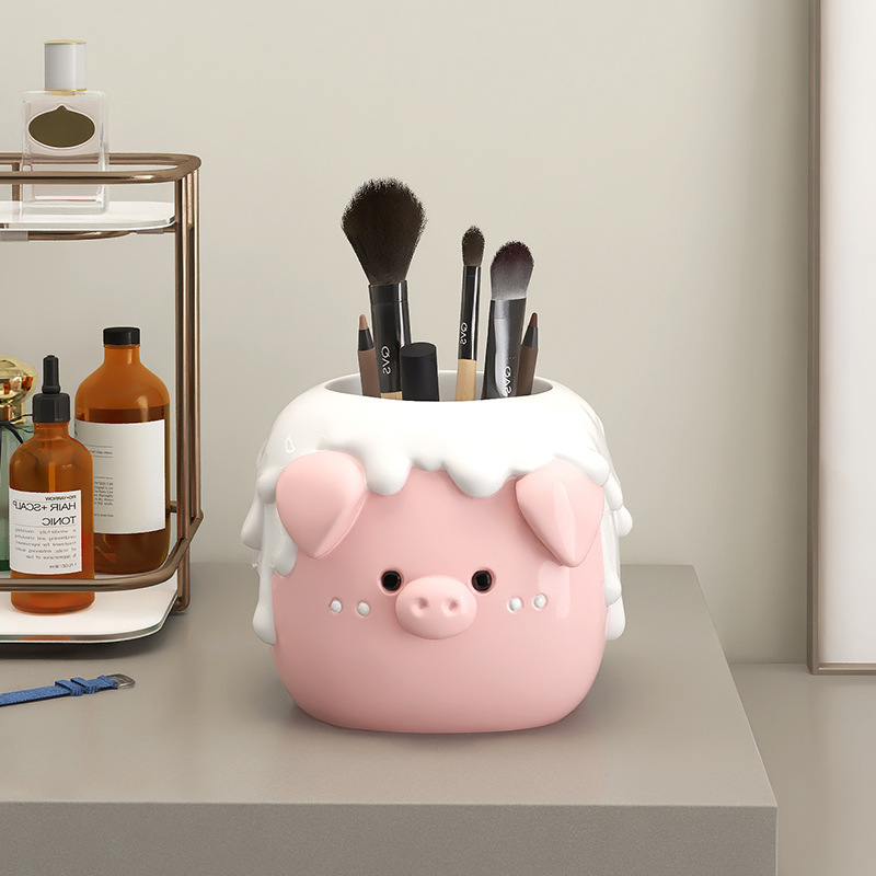 かわいい豚の筆筒の置物の家庭のアクセサリーの化粧台の化粧ブラシの口紅の収納箱の学生の子供の誕生日のプレゼント