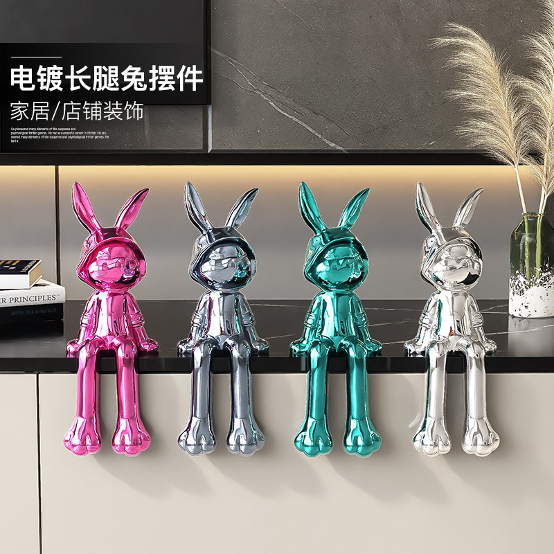 豪華なウサギが床に落ちてデパートのショールームの高級装飾品を飾る現代のソフトメッキ工芸品の高級感