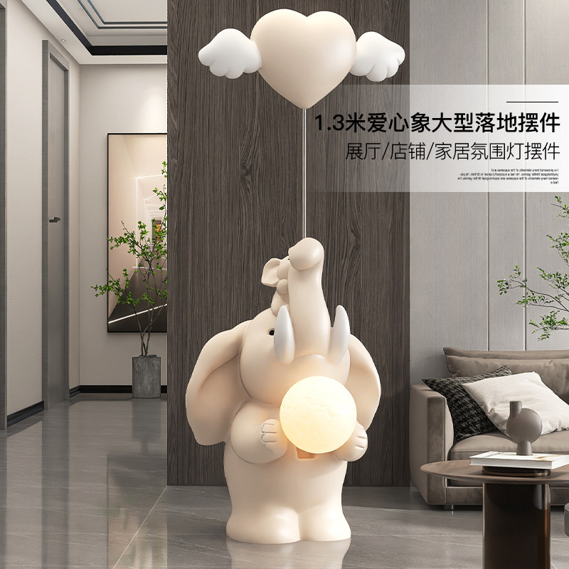 豪華な象が床に落ちてリビングの玄関の家の装飾品を飾っています。