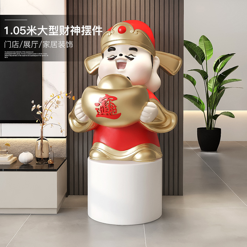 大型財神爺着地置物客間玄関家庭装飾品会社店舗フロント彫刻開業プレゼント