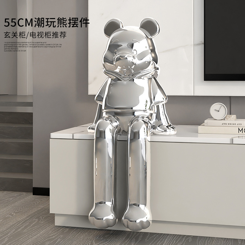 電気メッキされたクマの置物、リビングルーム用大型フロアスタンド、ネットで話題の装飾品、新築祝いギフト、テレビ台の横に置く、軽やかな高級感