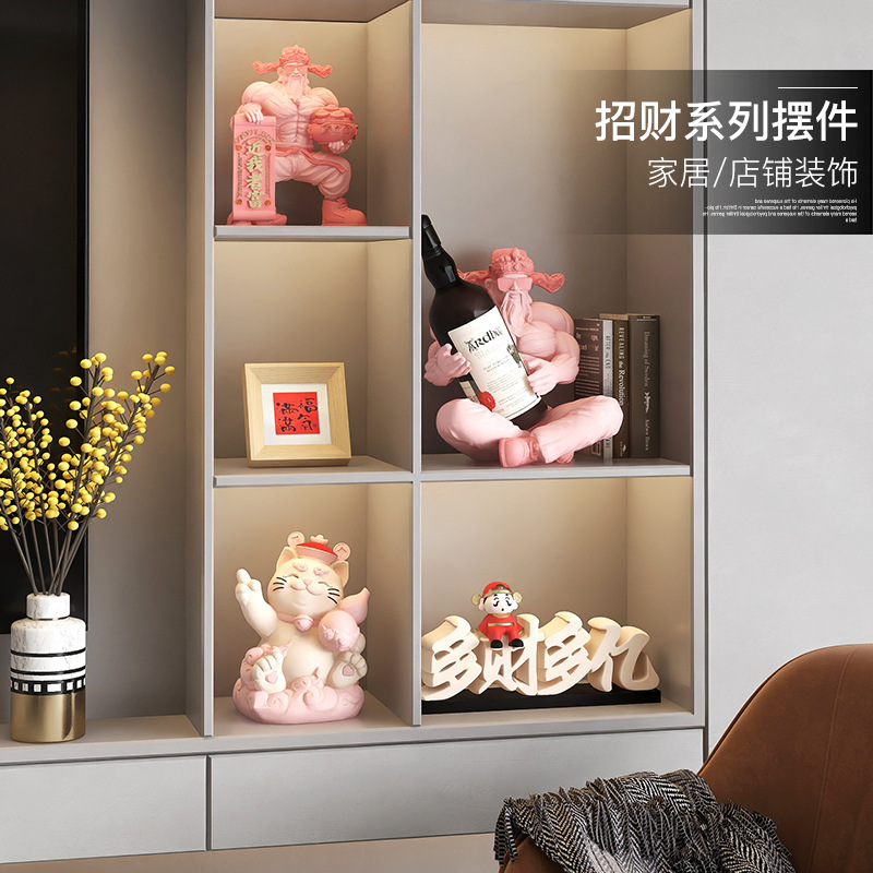 国潮筋肉財神爺装飾置物リビングルームテレビキャビネット家庭装飾品セット