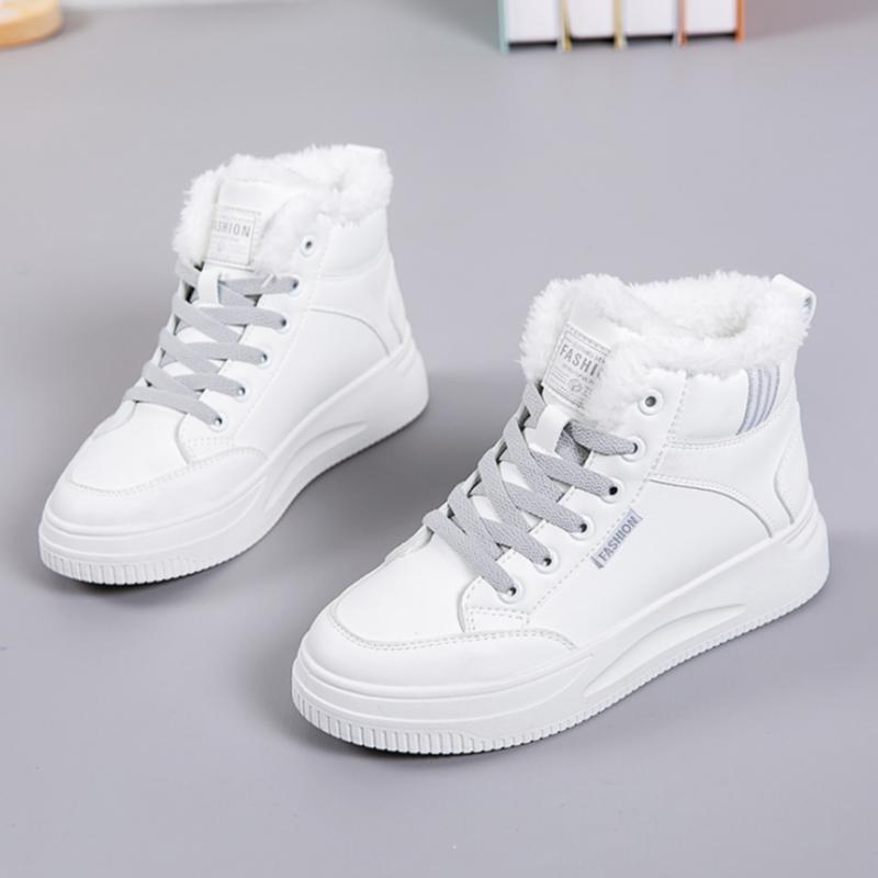 2025年冬新作 レディース 厚底カジュアルシューズ 滑り止め 学生向け ハイカット 暖かい綿靴 フリース裏地付き