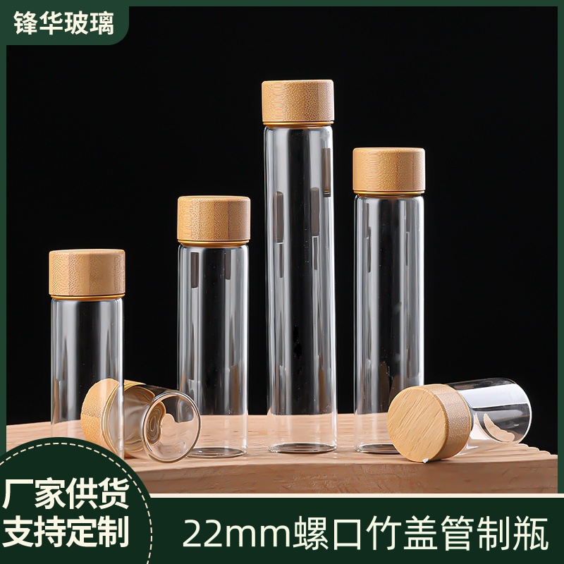 22mmナット口竹キャップパイプ制瓶キャンディー空瓶透明液体分注瓶粉末包装小薬瓶願い事瓶