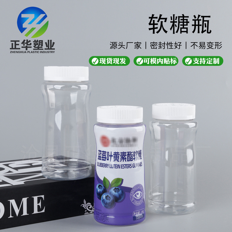 200 グラムブルーベリールテインエステルグミボトル PET 透明魚油プラスチック包装ボトル 400 ミリリットルジュースグミボトル