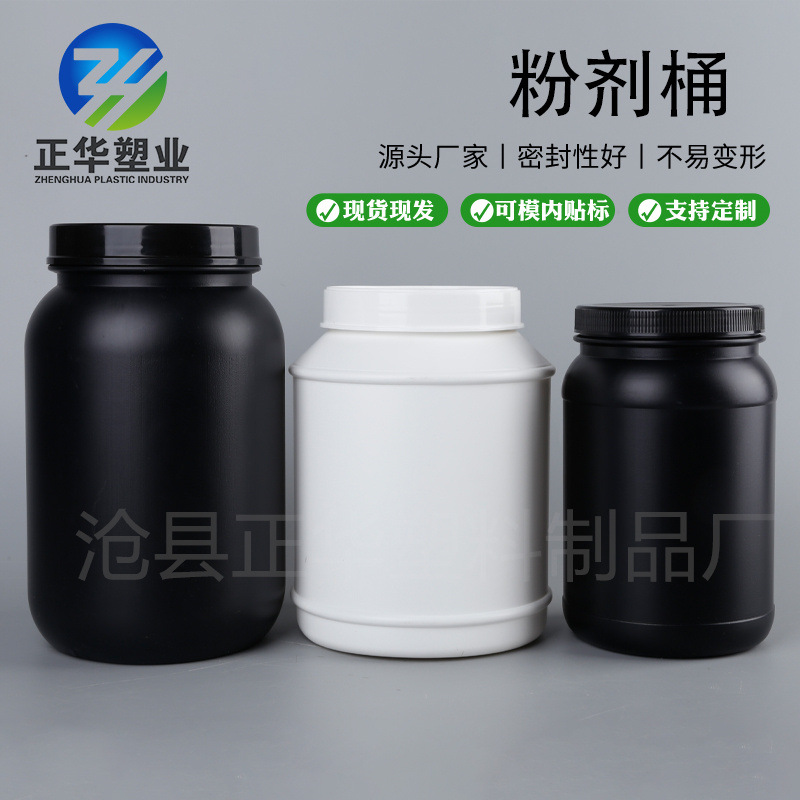 メーカー 1000 グラム食品グレードのプラスチックタンク HDPE 粉末バレル黒広口バレル 2000CC スポット