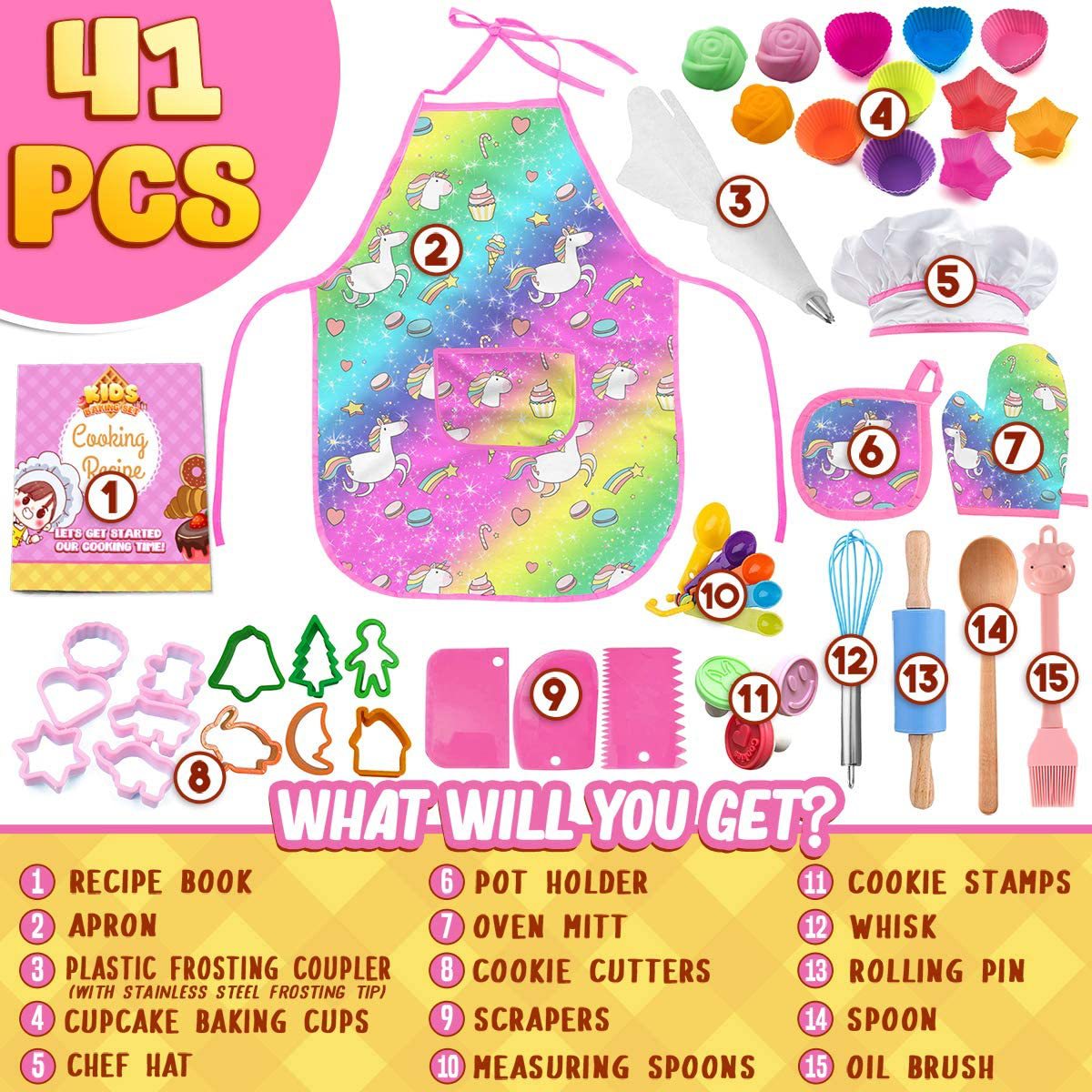 ユニコーン女の子調理器具ツールキット子供エプロンアートと手作り用品おもちゃセット