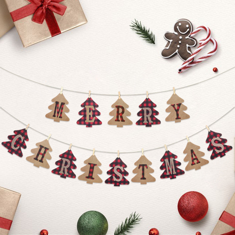 国境を越えてクリスマスを売る楽しい粗布バナークリスマスバナーはヘラジカと雪花マークの格子を持っている