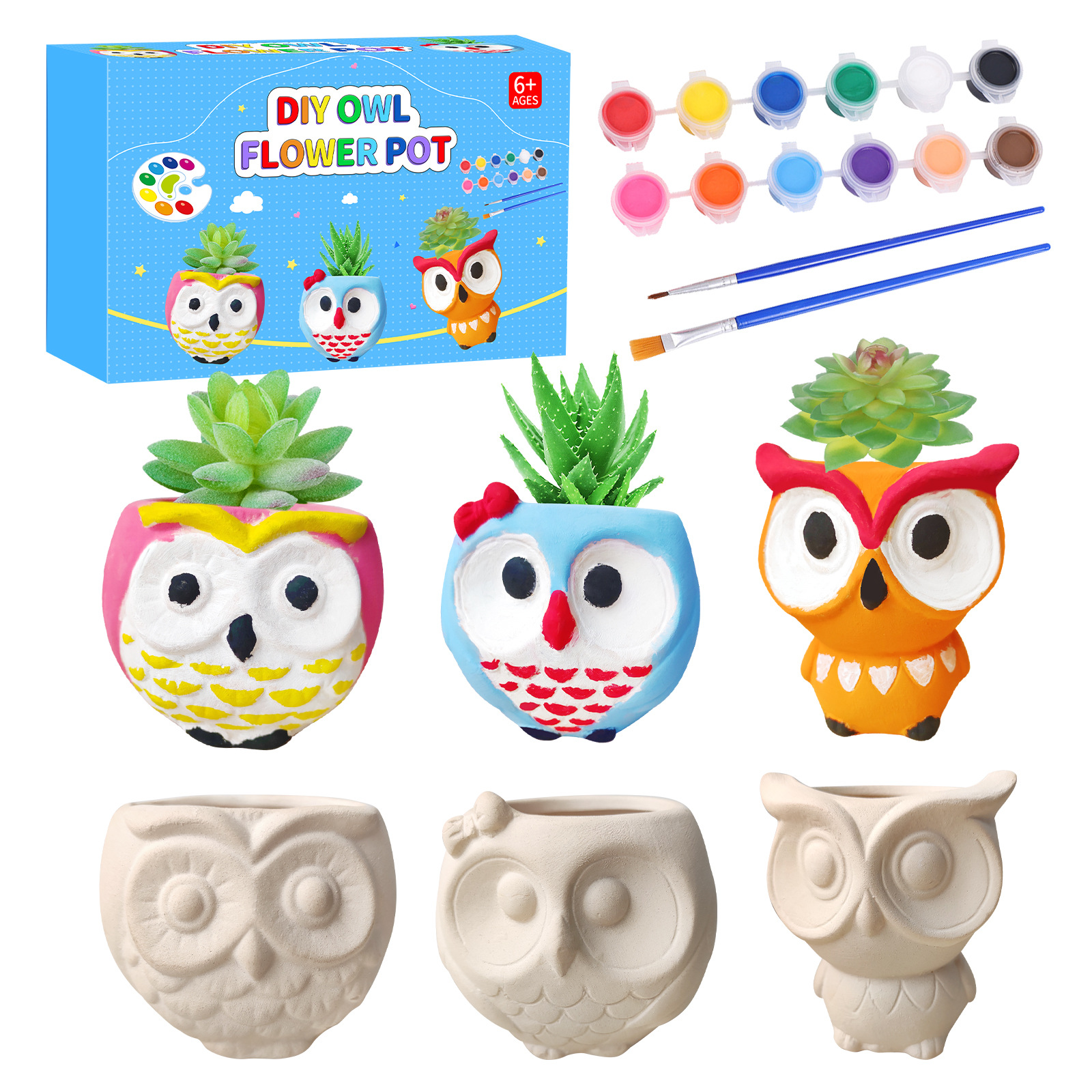 陶磁器のフクロウの多肉植物の植木鉢の小さい彫像のペンキの工芸のセットは塗っていません。