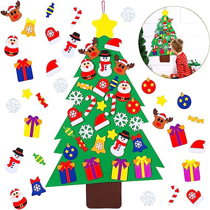 Diyフェルトクリスマスツリークリスマス装飾バナー雪花トナカイキャンディー壁掛け子供クリスマス新年パーティープレゼント