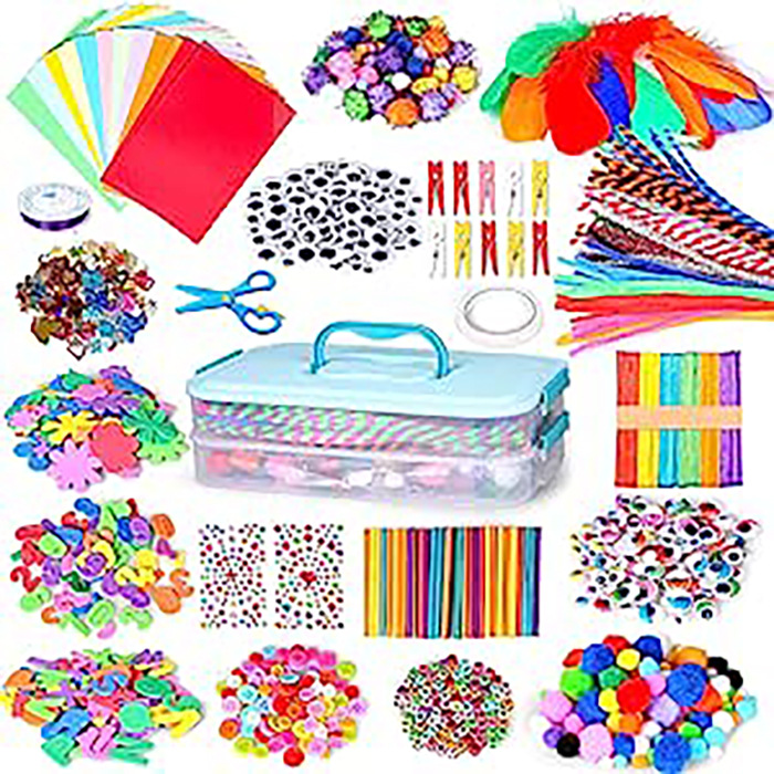 子供の工芸品セット、diy工芸品二重収納ボックス付き工芸品部品工芸品用品