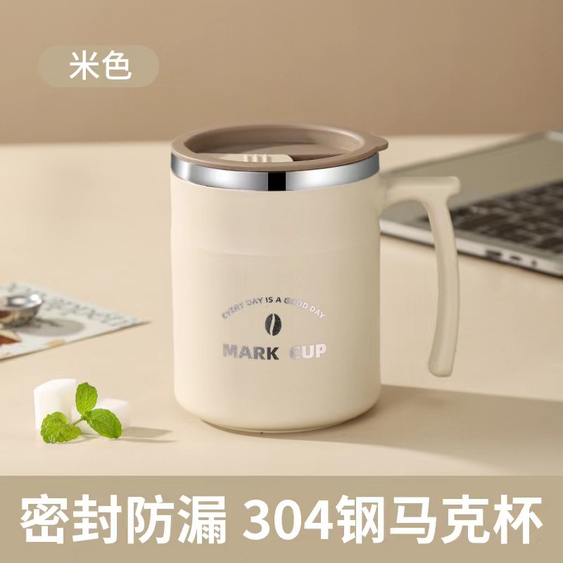 マグカップマグカップ高颜値蓋付きオフィスコーヒーカップ304ステンレスクリエイティブ朝食カップマグカップ