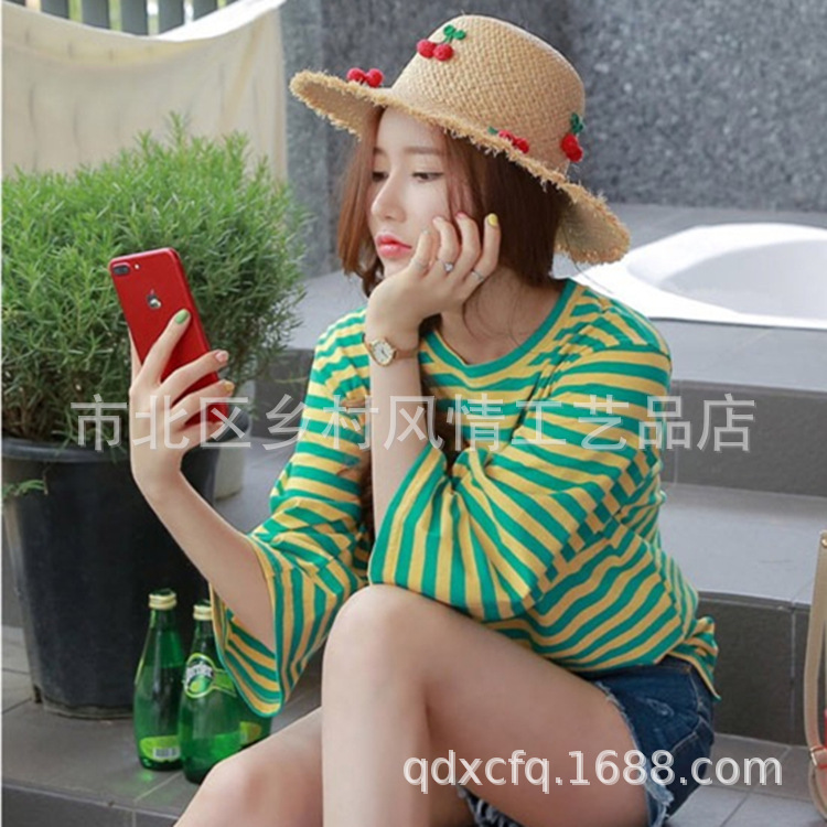 紙のひもの蝶結びの帽子の麦わら帽子の休暇のビーチのレジャーの日よけの女性の帽子の日焼け止めの帽子の夏の韓国のネットの赤い同金