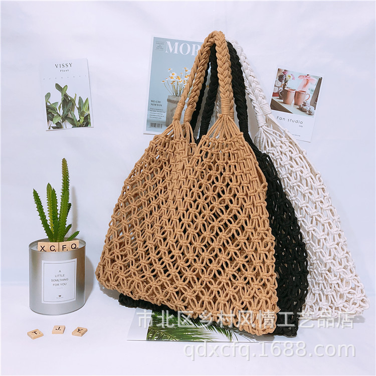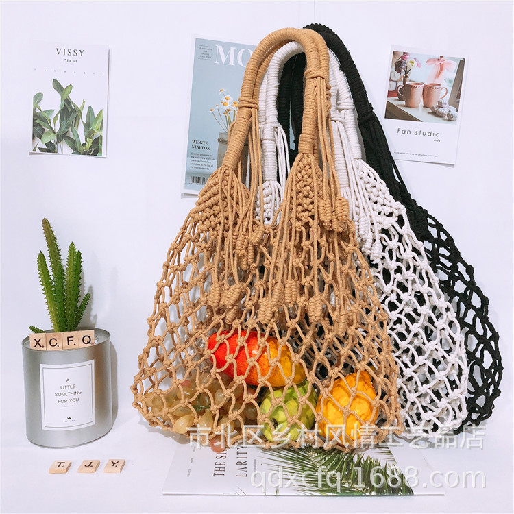 コットン糸フリンジボールネットバッグコットンロープバッグ漁網バッグ草編みバッグ透明バッグ編みバッグ
