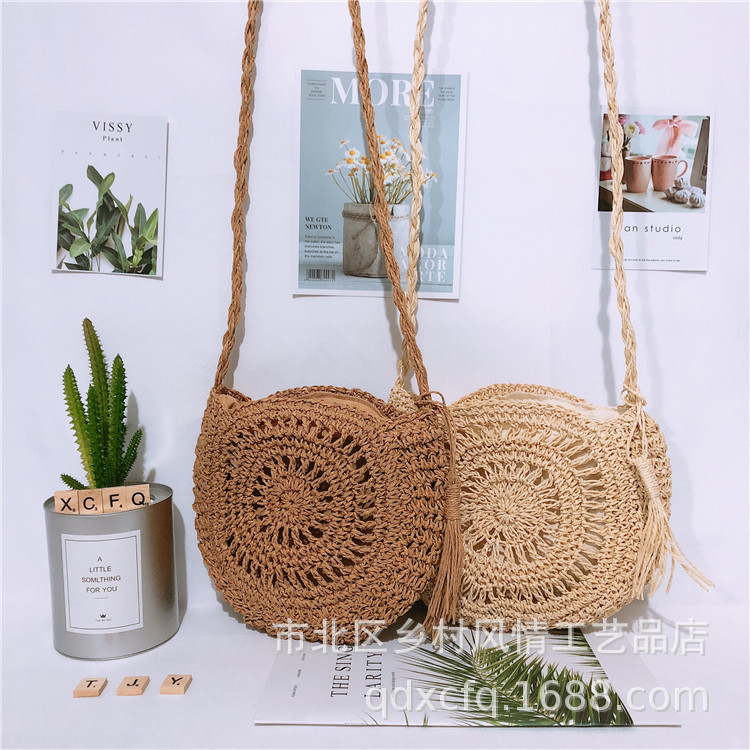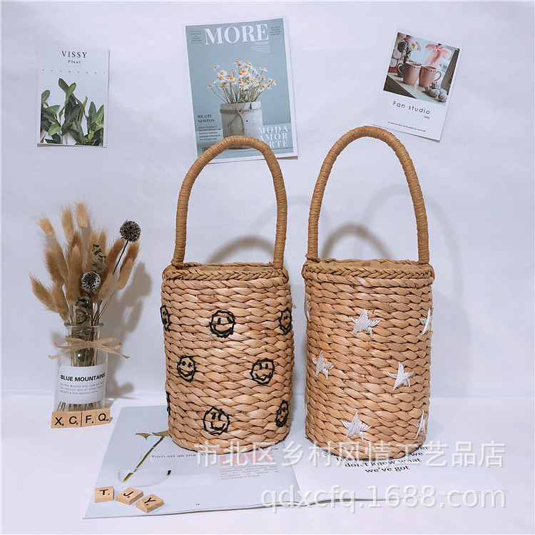 手提げ片肩綿線円筒バッグins編み斜めショルダー草編み民族風ビーチバッグ