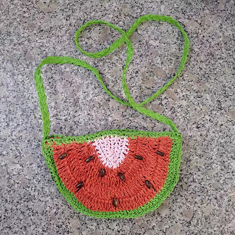 Sサイズのパイナップルのイチゴのスイカのかぎ針は果物を包んで子供の斜めのショルダーバッグの草を編んで紙の縄を包んで女性のカバンを包みます。