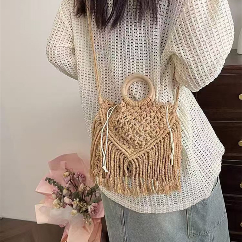 新商品の韓国版フリンジ斜めショルダー綿の編み草編みバッグ