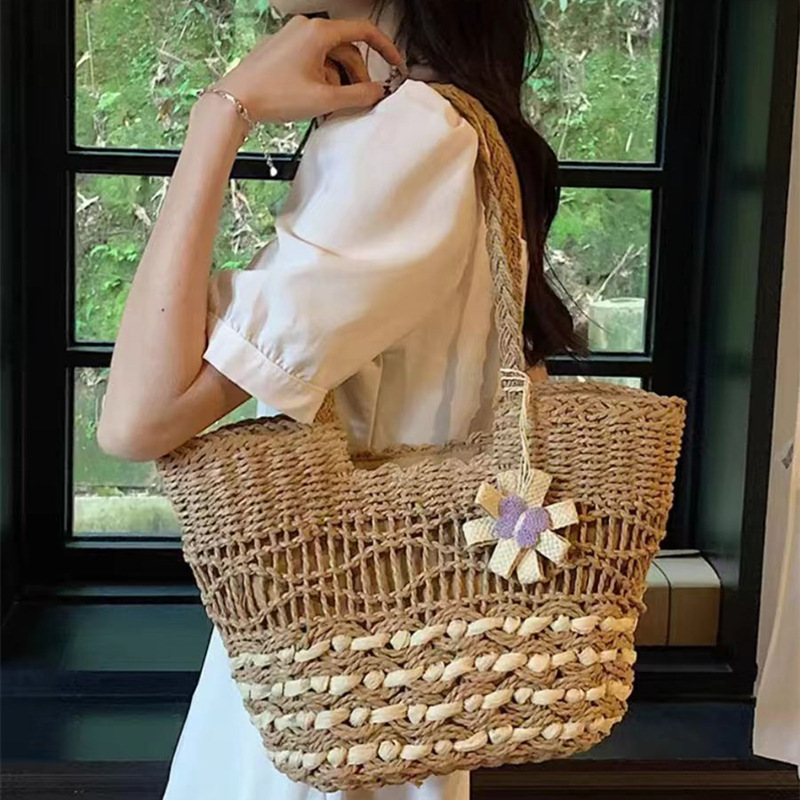 2025 夏の新しい多用途ショルダーわらバッグ海辺の休暇ビーチバッグ