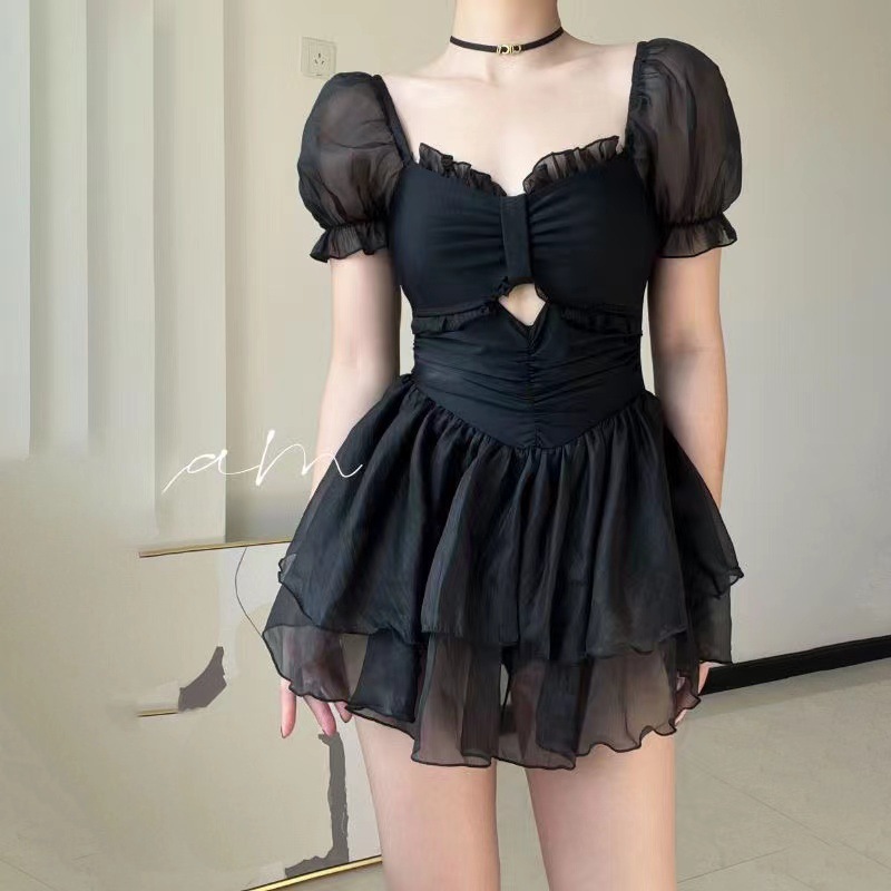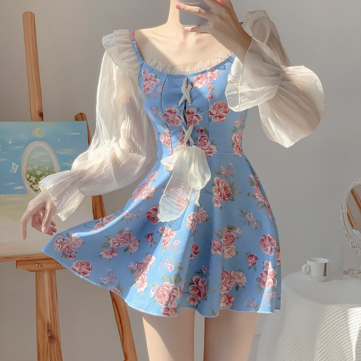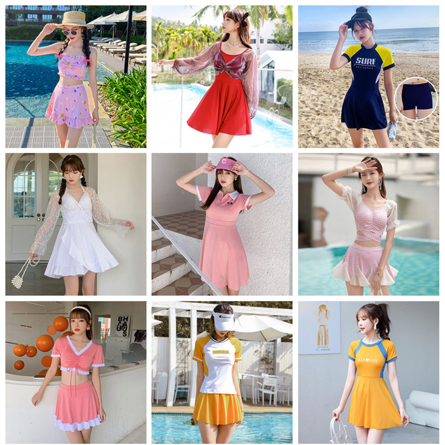 気質水着女性温泉保守純欲風連体スカート式ハイウエスト肉隠れ痩せ学生少女水着卸売り