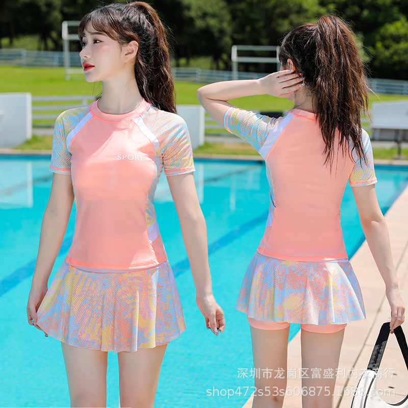プロの水着女性2024新連体学生半袖保守的にお腹を隠して痩せて温泉に入る韓国200斤