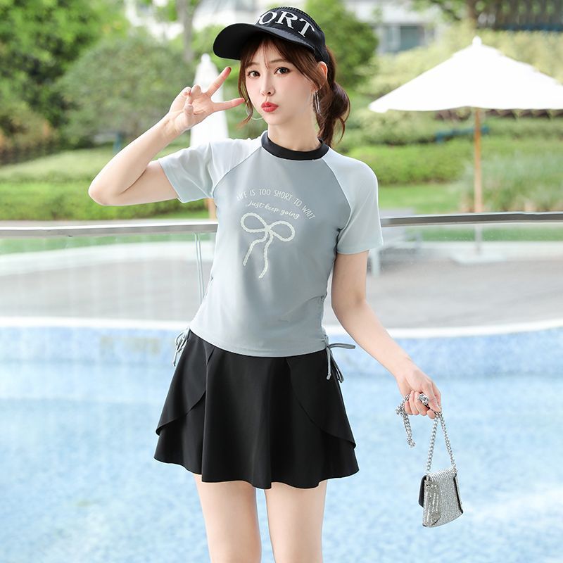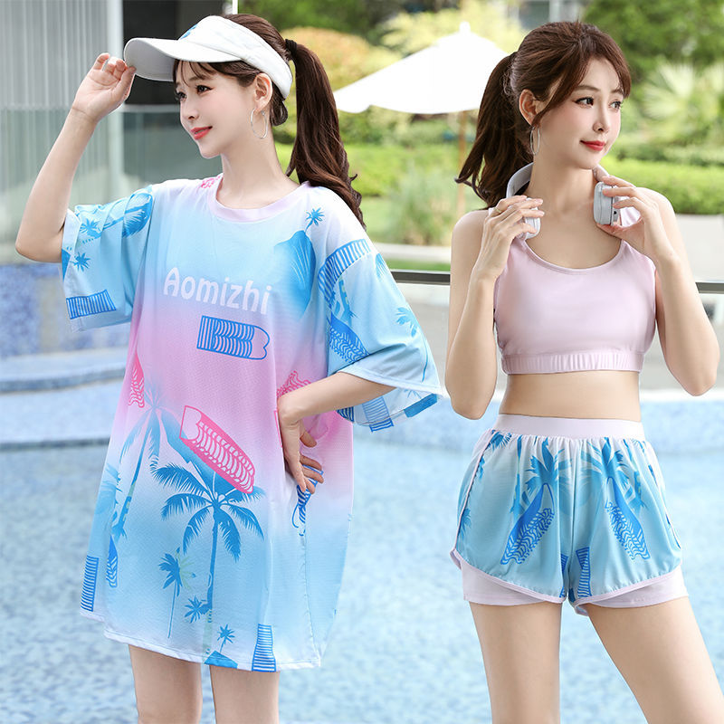 水着女性用スプリットブラウス中袖日焼け止めスポーツ三点セットお腹隠し保存温泉水着少女学生