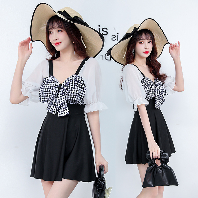 水着の女性のワンピースのスカート式の中で袖は温泉の休暇の水着の2024の新型の女性の保守の大きいサイズの水着に入ります。