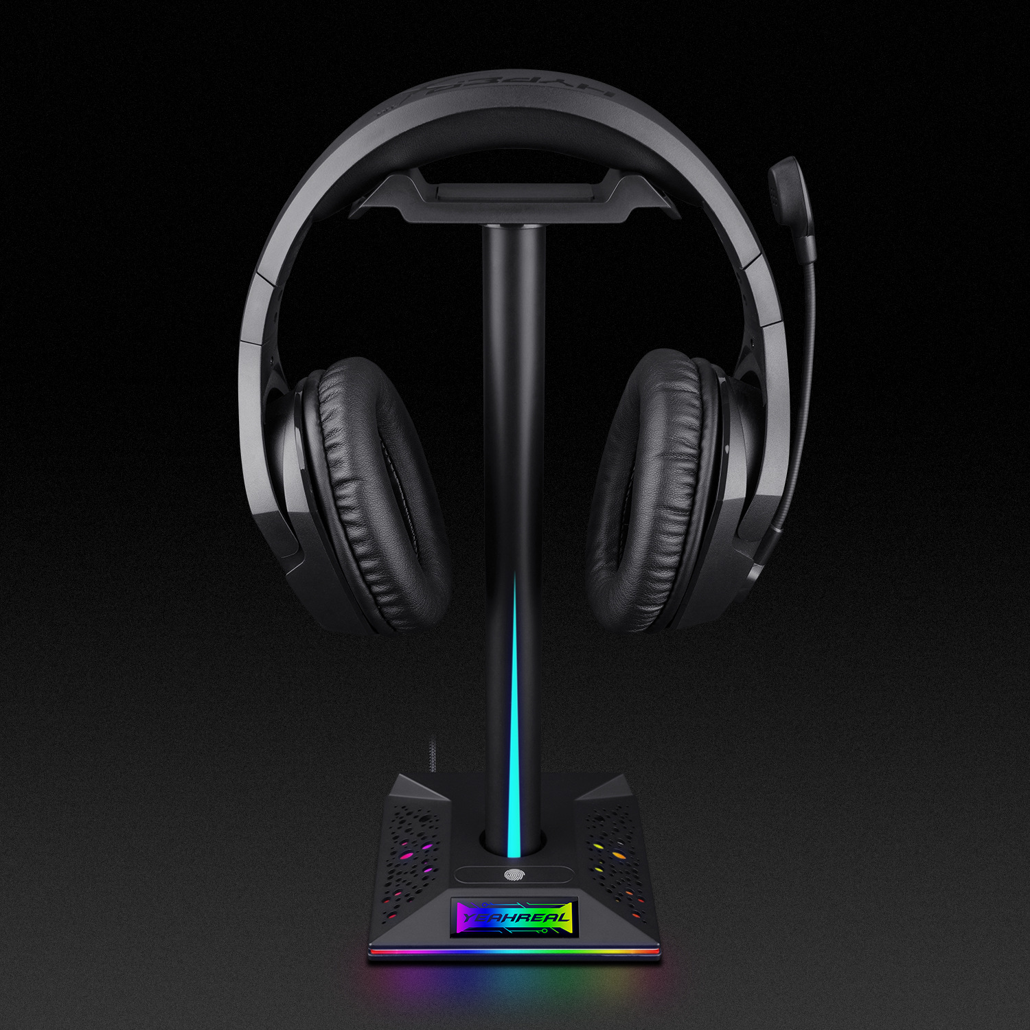 黒爵ヘッドフォンスタンドrgb発光ヘッドセット一体式デスクトップ縦型usbインターフェーススタンドクロスボーダー