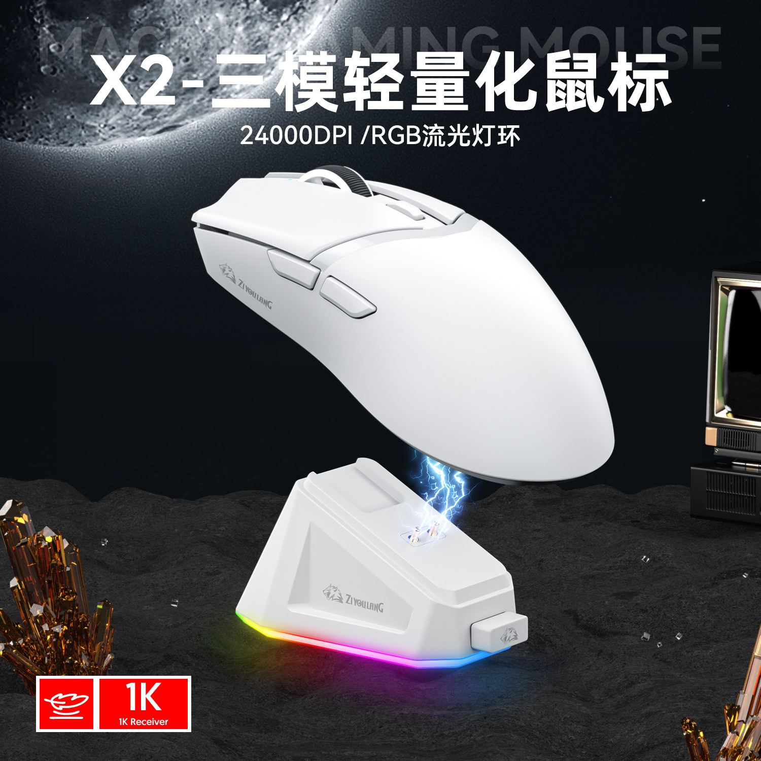 自由狼X2マウス軽量化PAW3311ワイヤレスbluetooth 3モードゲームマウス充電RGBベース付き