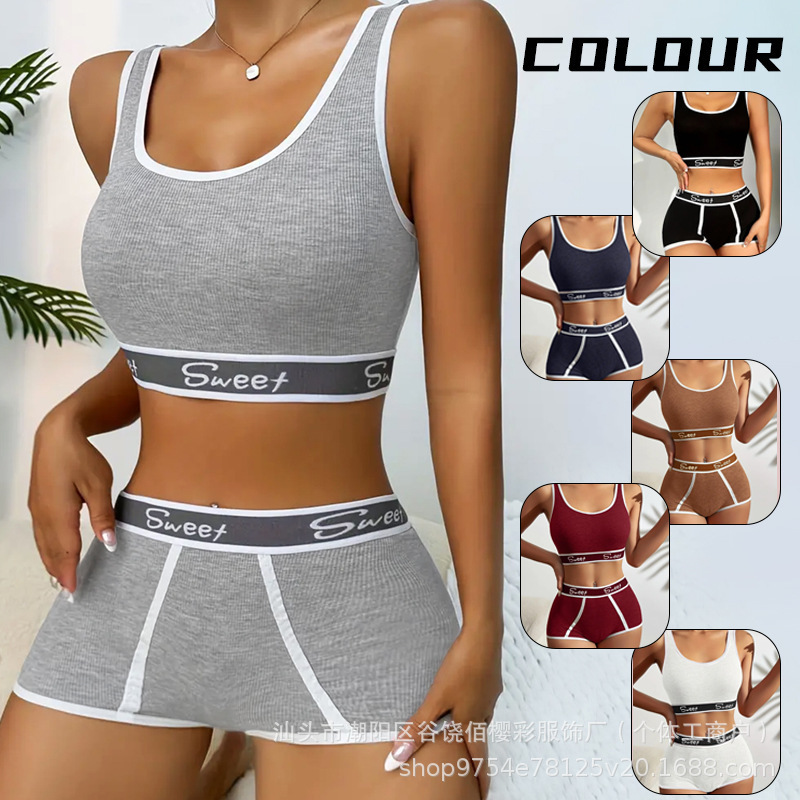 ヨーロッパとアメリカの国境を越えた人気のホットガールスポーツブラ女性のフィットネス純綿ワイドレターサスペンダーブラジャーベストセット