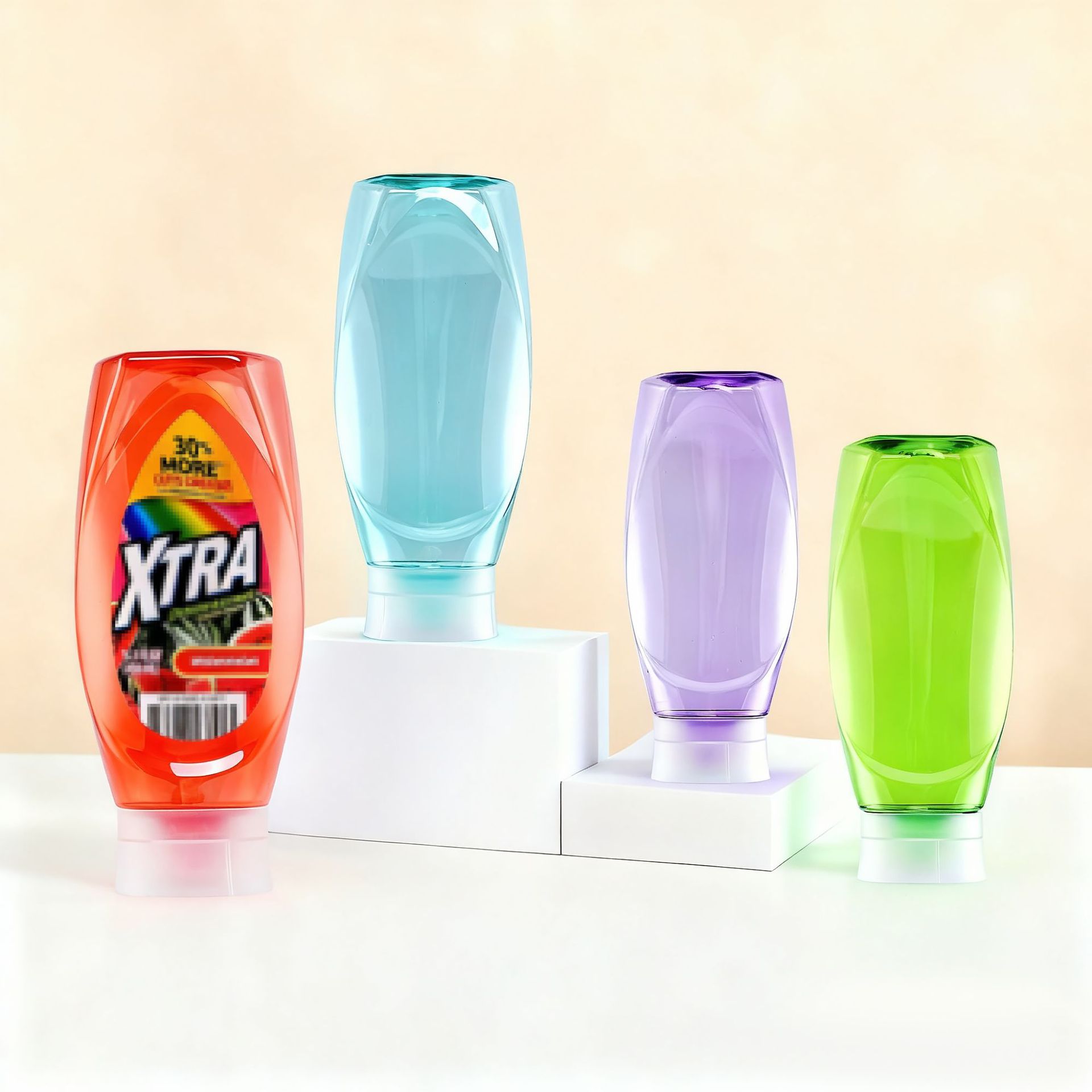 フラット形350mlフリップ押し出しプラスチックボトル液体包装ボトルボディーソープシャンプーボディクリーム包装ボトル