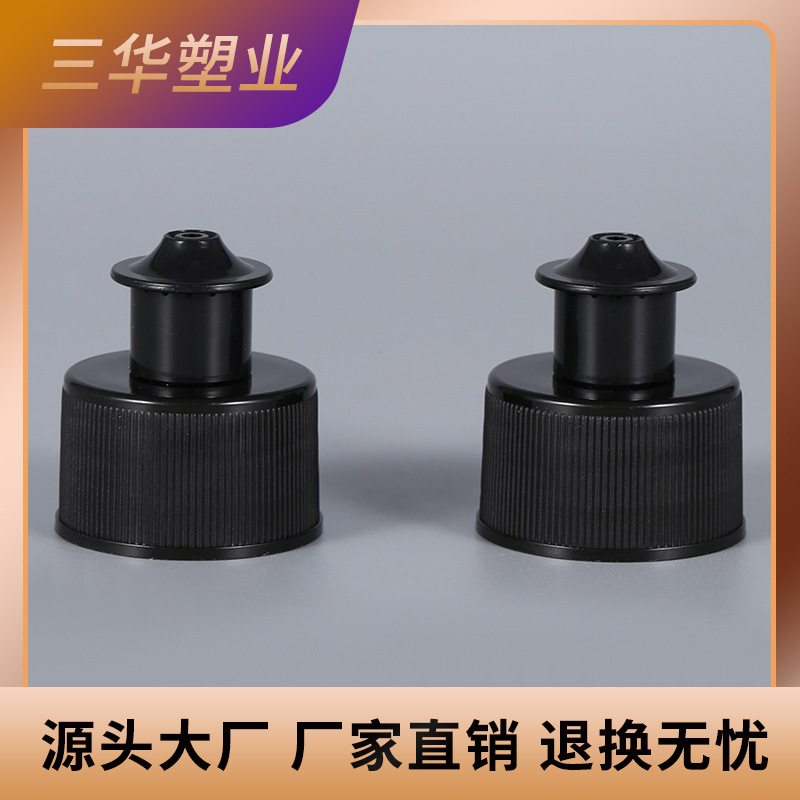 黒の外ねじ引き抜きカバー洗浄剤プルアップ式ストライプ包装カバーPP分注ボトルレースカバー