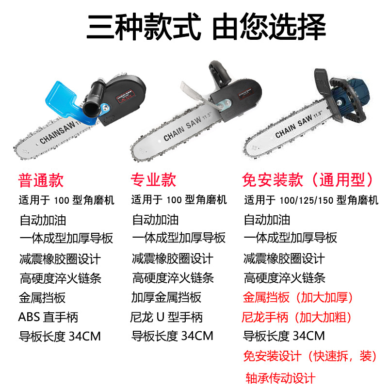 アングルグラインダー改造電動ノコギリ、手持ち式電動ノコギリ、薪割り・伐採用ノコギリ、ハンドグラインダー電動チェーンソー、チェーンガイド付き電動