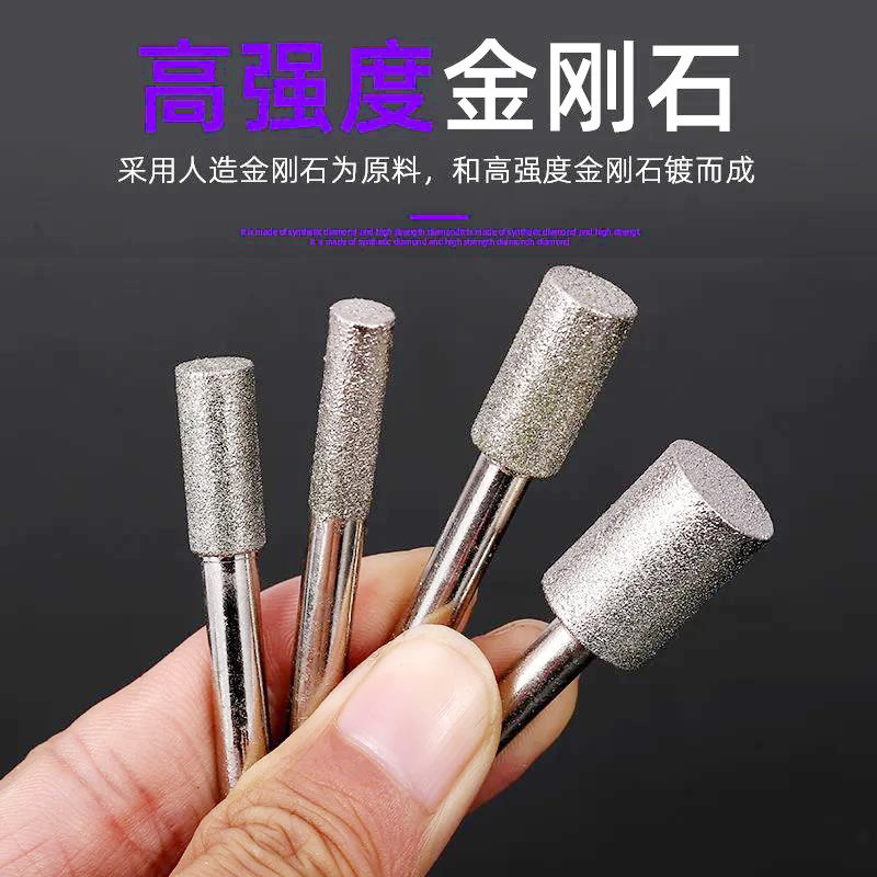 金刚砂研磨ヘッド6mm円柱形、翡翠・石材の皮むき・彫刻・鉄型研磨用、高硬度ダイヤモンド研磨棒