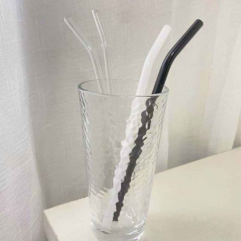 飲料ストローアクセサリー非使い捨てガラス高温耐性子供用シリコンストロー曲げチューブロング透明マルチカラーストロー