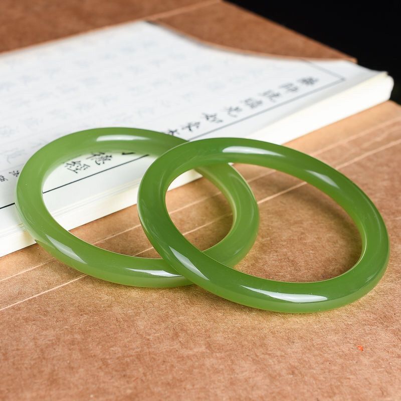 メーカーの卸売りは和田玉のリンゴの緑の腕輪の外蒙材の緑色の美人の腕輪の女性の金の細い丸の玉の腕輪をまねます。