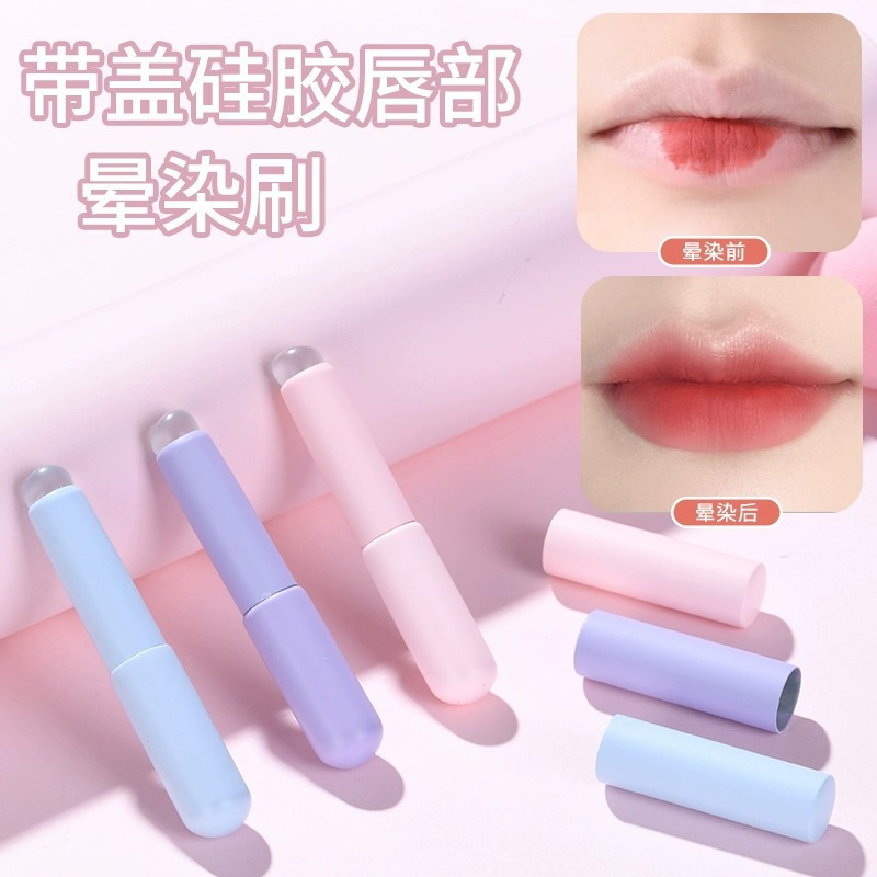 シリコン蓋付きリップブラシqソフト小型携帯丸頭指腹口紅ぼかしカバーブラシミニ初心者化粧ブラシ