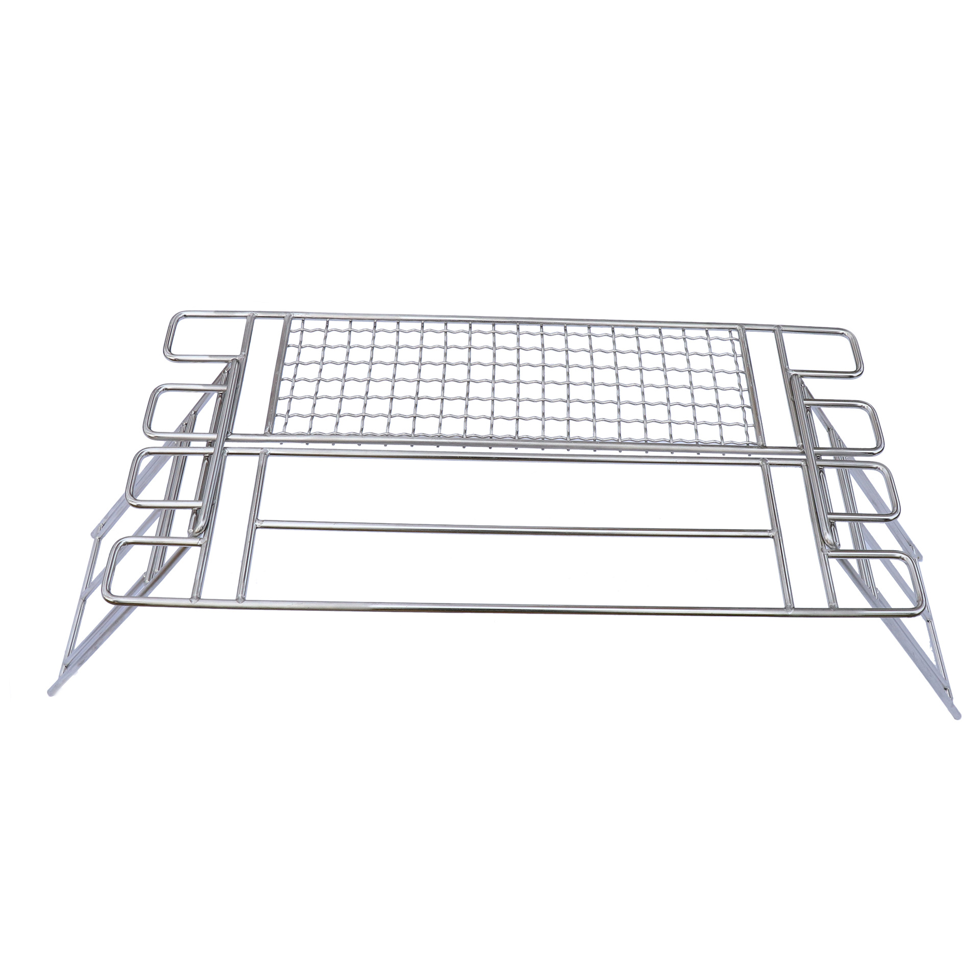 戸外ミニ折り畳みステンレス炉頭スタンドグリルセット鍋棚焼き盤スタンド焼き網トランペット
