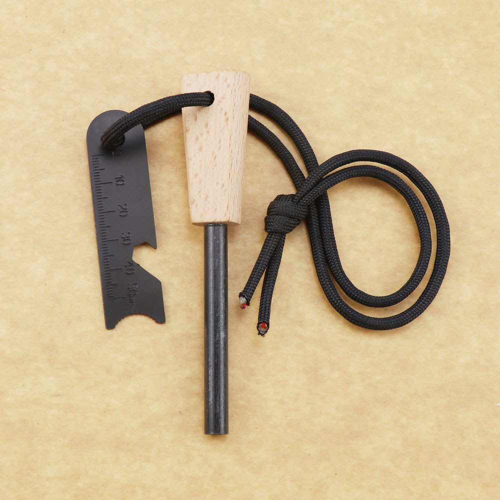 戸外で火石傘ひもセット木柄マグネシウム棒多機能スクレーパー屋外キャンプで火を取る道具