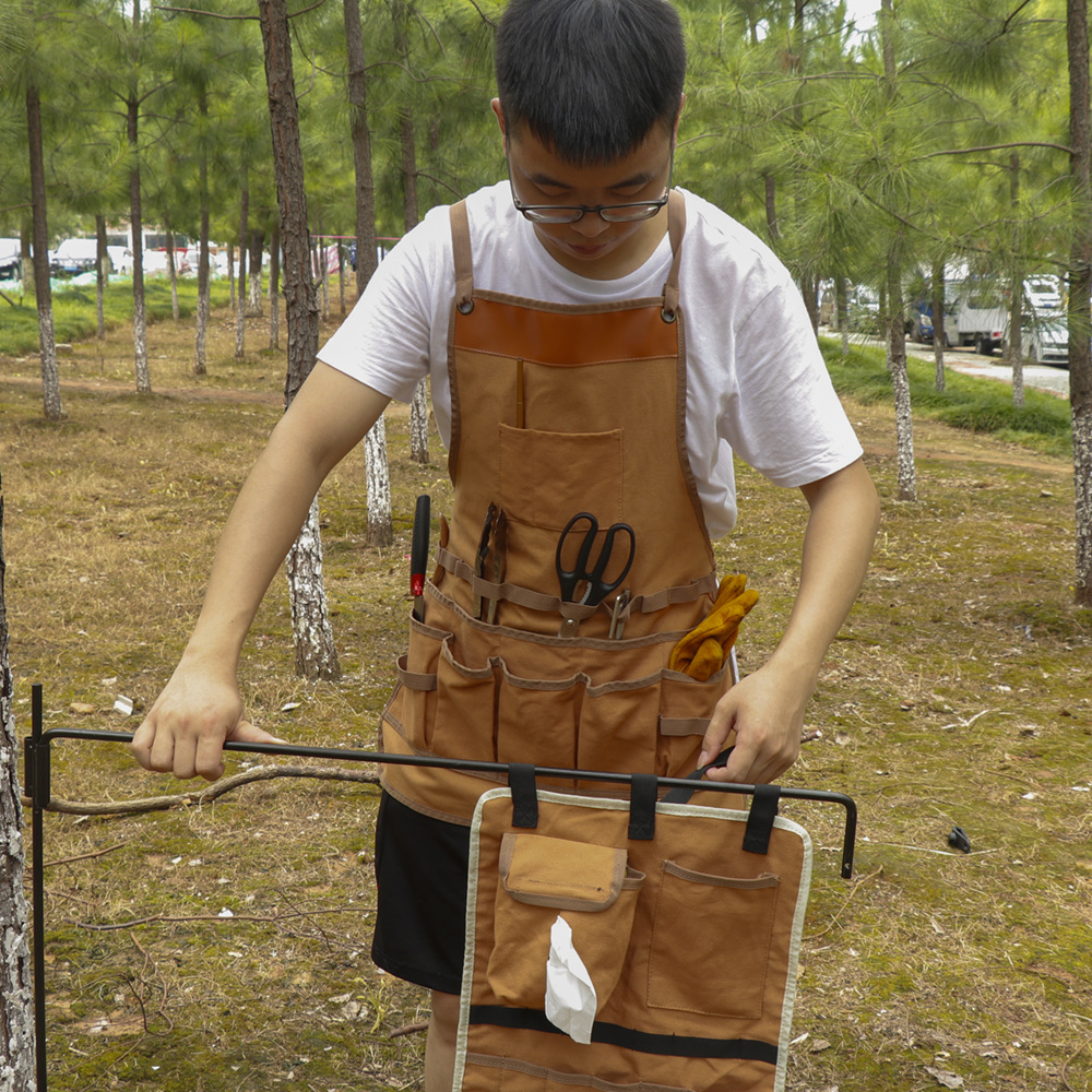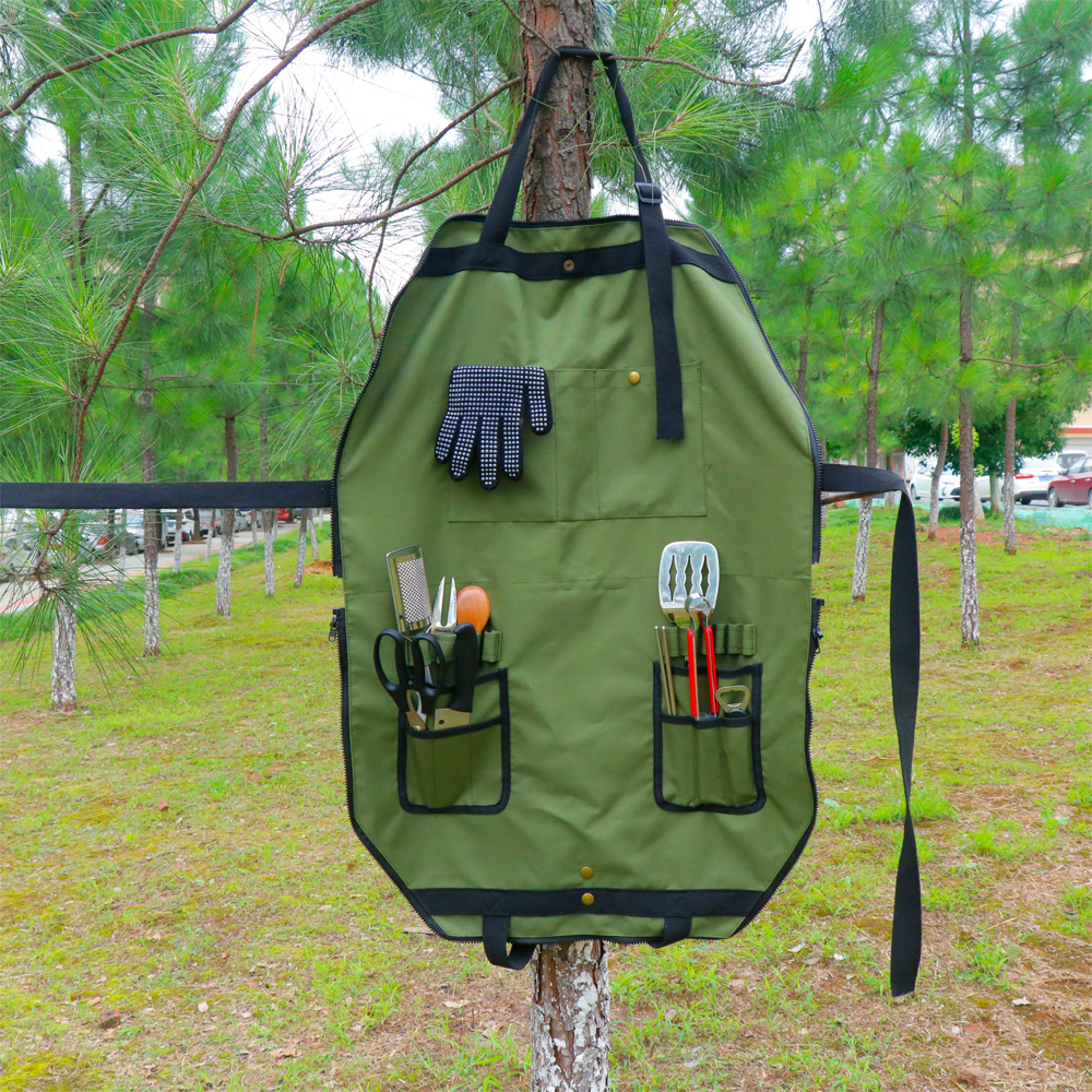 アウトドア多機能キャンバスエプロンキャンプ用バーベキュー防護服調節可能なショルダーストラップ庭園作業服