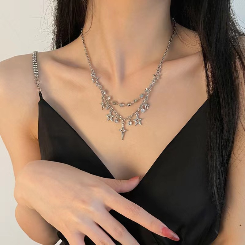 二重星ジルコンネックレス女性ファッション個性小衆デザイン鎖骨チェーンレトロ甘いクールギャル首飾りアクセサリー
